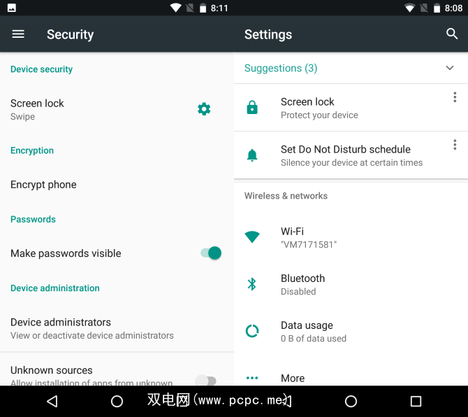 与以往一样,Android Nougat对用户界面的视觉效果进行了各种调整。其中大部分是基于信息的。例如,它会在“设置"主屏幕中显示您连接的是哪个Wi-Fi网络。