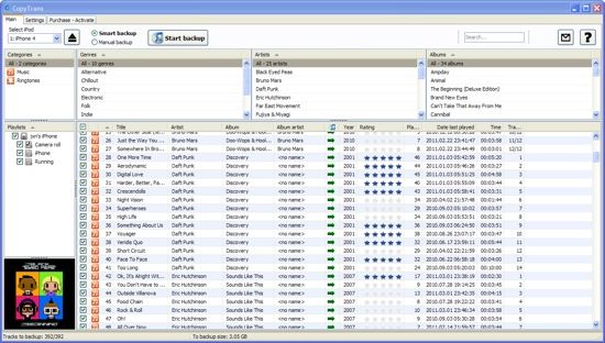 安装CopyTrans 4并连接运行iOS 5的iPhone后,CopyTrans可以检测所有媒体文件,包括播放计数,评分,播放列表和插图。