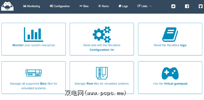 想玩现有的复古游戏这些模拟器的库?最好的方法是通过PC浏览器。只需在地址栏中输入RecalBox Raspberry Pi的IP地址,即可看到网络控制台。可通过RecalBox上的 Network Settings 菜单项找到IP地址。