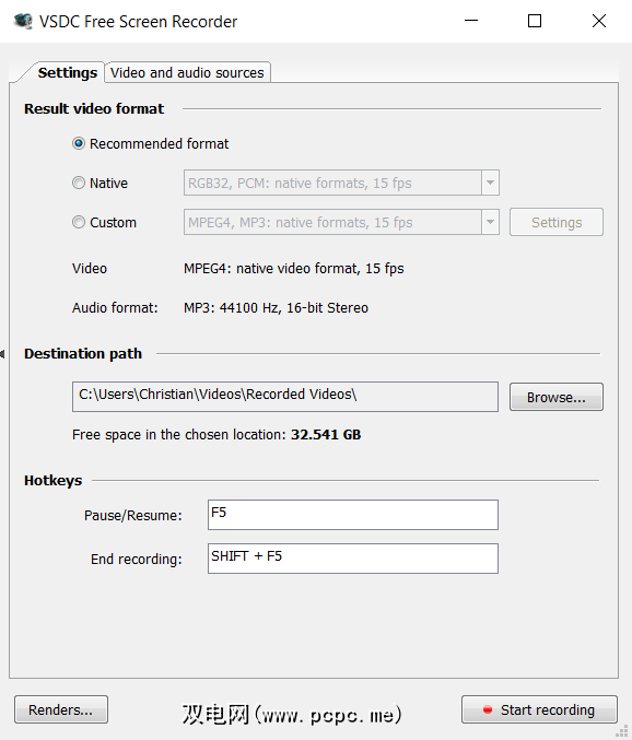 您需要做的就是单击开始录制首先,排列捕获区域的大小,按 F5 开始记录,然后按 SHIFT + F5 热键组合结束(按s是可配置的)。完成的视频保存为AVI文件,可以根据需要在VSDC视频编辑器中进行编辑。