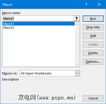创建宏后,可以从 Developer 访问它们标签。点击宏以查看它们。您也可以按 Alt + F8 打开此窗口。在这里您可以选择宏并执行各种选项,例如运行,编辑或删除。