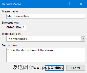 我建议您在选择时按住 Shift 您的按键组合使其成为快捷方式的一部分。如果宏快捷方式已经存在,它将覆盖默认的Excel快捷方式。例如,如果您选择 Ctrl + A ,则它将覆盖选择所有内容的功能。相反,请使用 Ctrl + Shift + A ,因为这不是现有的快捷方式。