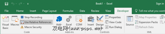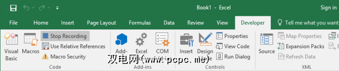 完成宏步骤后,请在 Developer 标签,在 Code 组中,单击 Stop Recording 。