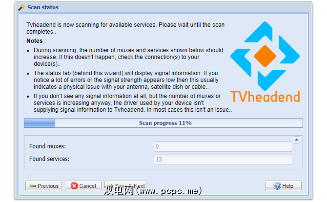 这将开始扫描以所选发射机的频率工作的频道。让它一直运行直到进度达到100%,然后单击保存并下一步。