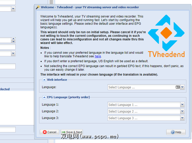 为Web界面和EPG选择语言(电子节目指南,用于电视节目),然后单击保存并下一步