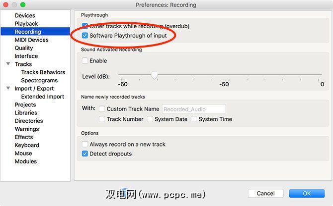 下一步,点击左侧栏中的录制。在这里,您可以检查软件播放方式选项,该选项可让您在录制过程中收听录音。