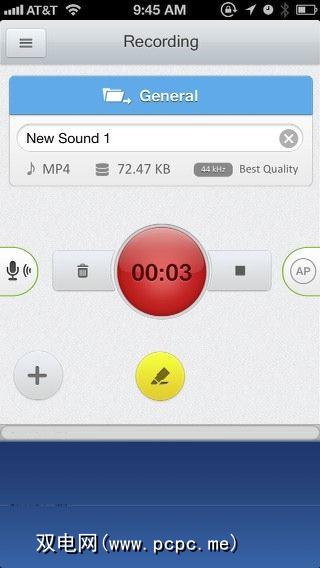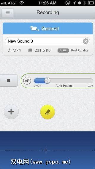 突出显示按钮非常酷,但是请注意右侧的小 AP 按钮侧。如果您要录制的声音降至指定的十进制声音(可以调整),Recordium将自动暂停录制。此自动暂停功能可用于减小文件大小并排除录音中的间隙。