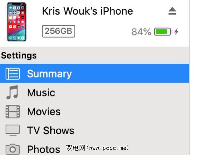 要从iTunes还原,请将iPhone插入计算机。 iTunes应该会自动启动。一段时间后,您应该会在屏幕左侧的菜单中看到iPhone弹出窗口。