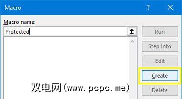 在 Developer 中选择了 Macros >标签,为您的宏输入名称(这只是一个示例,因此具体无关紧要),然后单击创建。