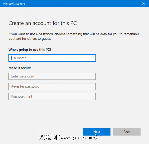 按 Windows键+ I 打开“设置"。转到帐户>家庭和其他用户。点击将其他人添加到此PC 。此时,您只需按照向导进行操作即可。但是,如果要创建本地帐户而不是Microsoft本地帐户,请单击我没有此人的登录信息,然后添加没有Microsoft帐户的用户 >。