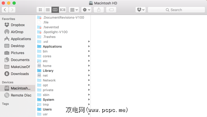 要开始,请打开 Finder ,然后转到 Macintosh HD :