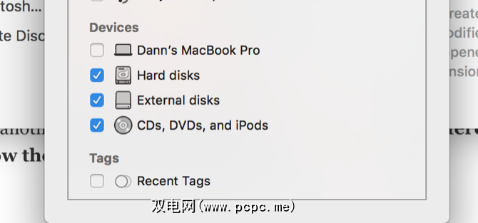 如果没有看到Macintosh HD(或硬盘驱动器的其他名称),请转到 Finder>首选项并选择在侧栏中显示这些项目下的硬盘: