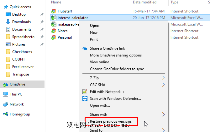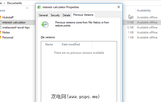 如果您不使用OneDrive,仍然有可能恢复被覆盖的Excel文档。如果您在Windows中启用了文件历史记录,则可以使用它来查找旧版本。