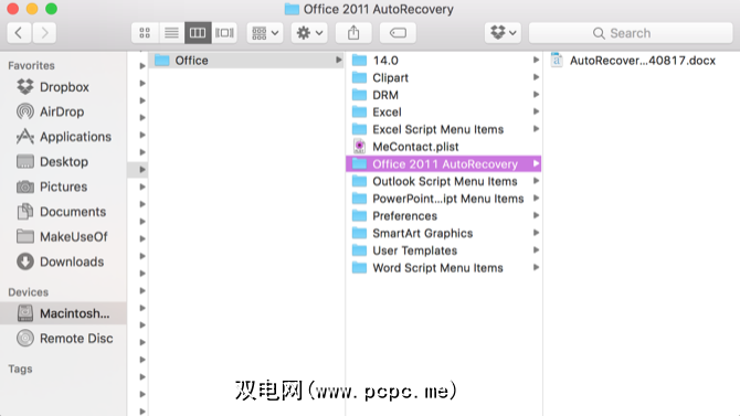 在我的Mac上,我将转到用户> [您的用户名]>库>应用程序支持>微软> Office> Office 2011自动恢复: