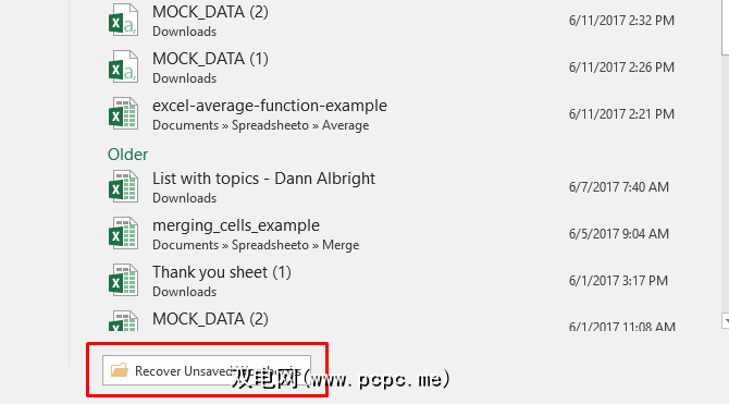 在屏幕底部,您会看到恢复未保存的工作簿按钮: