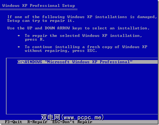 啊哈!现在,在下面的此屏幕上,如果有多个安装,则要突出显示Windows的安装。然后按R键!是的,您将在此处按该键修复安装。该过程将重写所有系统文件,而不会重写所有文件。