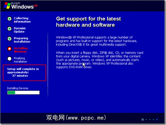 按R键后,安装向导将开始将系统文件从介质复制到硬盘/ Windows安装中。这在我的机器上花费了大约4分钟。