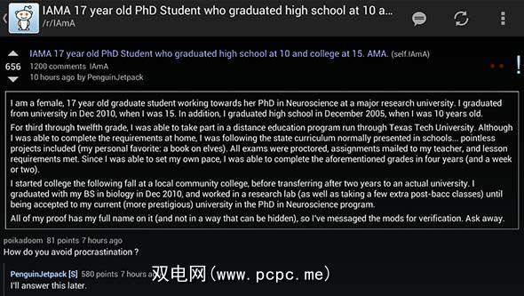 点击任意标题以查看更多选项,或点击右侧的文章图标直接进入链接。应用内浏览器可以快速将您直接带到链接到的网站或图像,但是由于这是Reddit,所以真正的乐趣就在于评论。