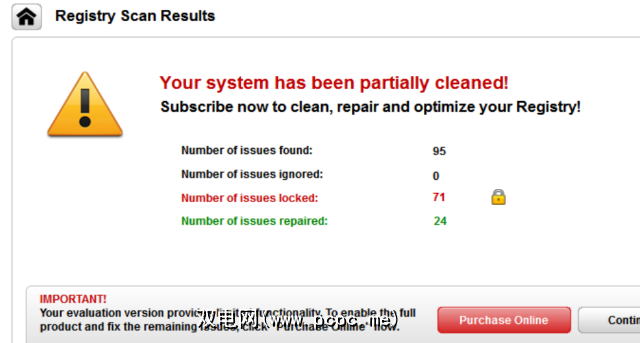 一旦软件完成了对注册表的扫描(它似乎几乎一直在进行扫描),它通常会通知您问题-但要告诉您修复它们是收费的。