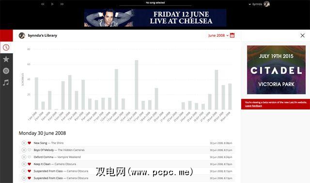 您的聆听历史是Last.fm新外观的核心。以前,即使是琐碎的任务,例如检查您去年最听的专辑的内容,也是困难的,即使不是不可能的,也没有真正的原因。第三方工具必须使用Last.fm的公共API来填补空白。