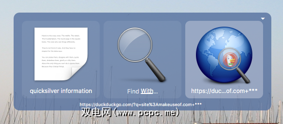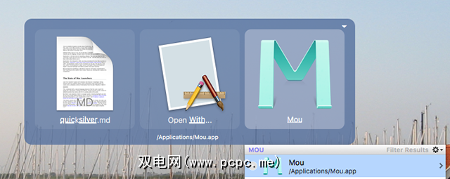Spotlight和Alfred都是搜索应用程序的核心:您键入查询,然后按 Enter 选择结果。 Quicksilver也会搜索,如果要打开它,只需按 Enter 。但是真正的魔力发生在您键入查询然后点击 Tab 时。