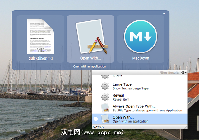 值得注意的是, Quicksilver可以在没有任何插件的情况下完成所有这一切:这是所有现成的功能。而且,“打开方式"不是唯一可以做的事情: