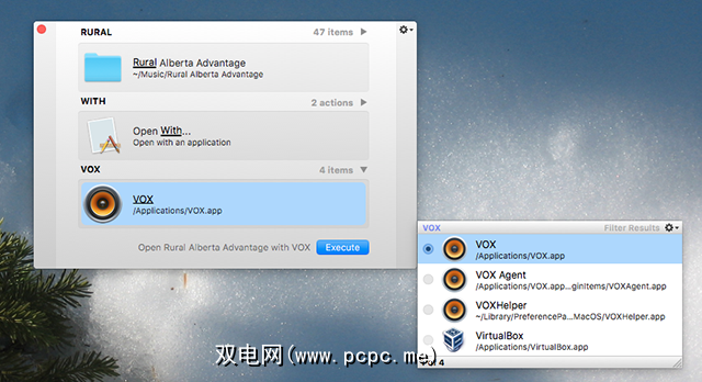 如果您是那种在工作流程的不同部分使用不同程序的人,那么不难发现这会派上用场。但这不仅是为了工作。我更喜欢使用Vox而不是iTunes,Alfred让我可以快速播放Vox中的任何音乐文件夹。