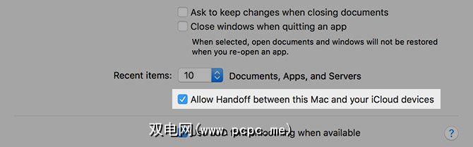 Handoff是iOS 8中新增的一项功能,可以更轻松地在设备之间进行切换。确保已在系统偏好设置>常规>允许Mac和您的iCloud设备之间切换下打开它。