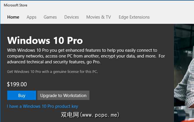 您可以从“设置"中的激活菜单执行此操作;点击转到商店。在这里您可以购买Windows 10 Home($ 140)或Windows 10 Pro($ 200)的产品密钥,具体取决于安装的版本。