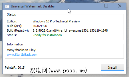 Winaero提供了一个称为“通用水印禁用器"的工具,这是最接近的解决方案用于我们发现的Windows 10水印去除剂。只需下载并打开它,然后从对话框中选择安装。这将使您从计算机中注销。