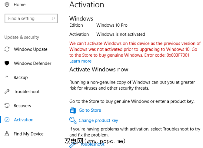 上面的激活方案列表并不详尽。例如,您可能安装了不匹配的产品密钥和Windows版本。 Windows 10 Home的密钥不会激活Windows 10 Pro。