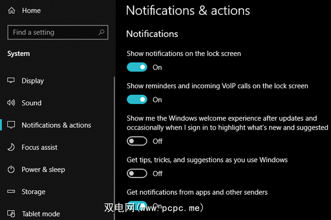 有人报告说,前往 Settings> System>通知和操作,并同时禁用向我展示Windows欢迎体验... 和获取提示,技巧和建议... ,这将在重启后禁用Windows 10水印。