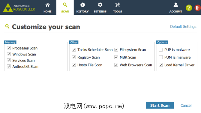 RogueKiller是一种更为传统的恶意软件清除工具,但是它拥有一个反rootkit模块,可以检测许多其他恶意软件清除工具无法检测到的威胁。