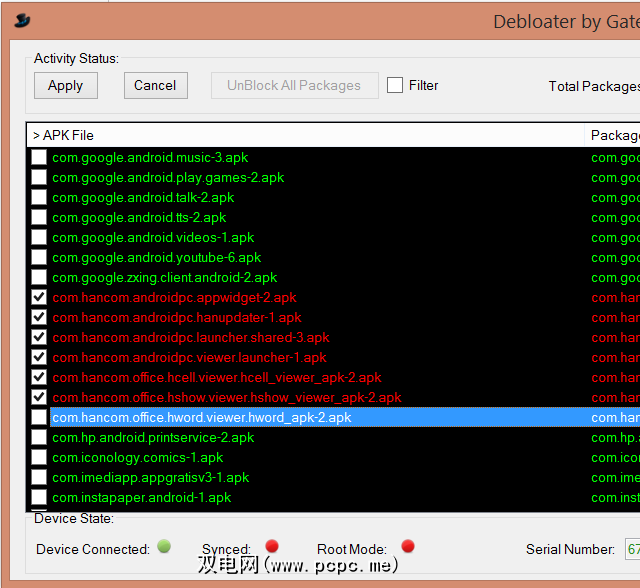 找到要阻止的文件后,请使用左侧的复选框,然后应用。该应用程序将开始阻止不再需要的APK文件,从而使您的设备在运行过程中失血。
