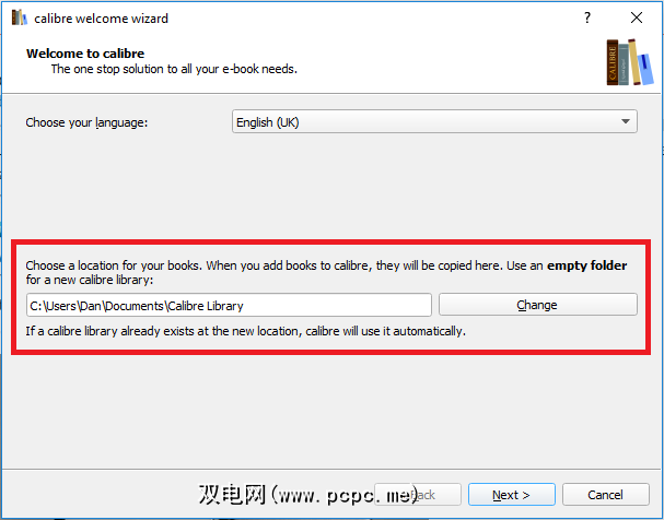 安装该软件并首次启动该应用。出现提示时,选择包含您现有电子书购买的文件夹。如果还没有,请创建它。