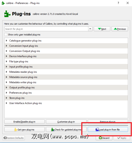 如果您拥有Kindle,则只有最后一步。在Calibre中,转到首选项>插件,然后展开文件类型插件下方的菜单。