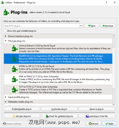 Calibre支持多种执行许多不同功能的插件。要删除DRM,您需要 apprenticealf的电子书DRM删除工具。可以从GitHub下载最新版本。
