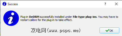 找到解压缩的文件,然后导航至 DeDRM_calibre_plugin> DeDRM_calibre_plugin 。在弹出的病毒警告上单击是,您将看到一条消息,确认安装成功。