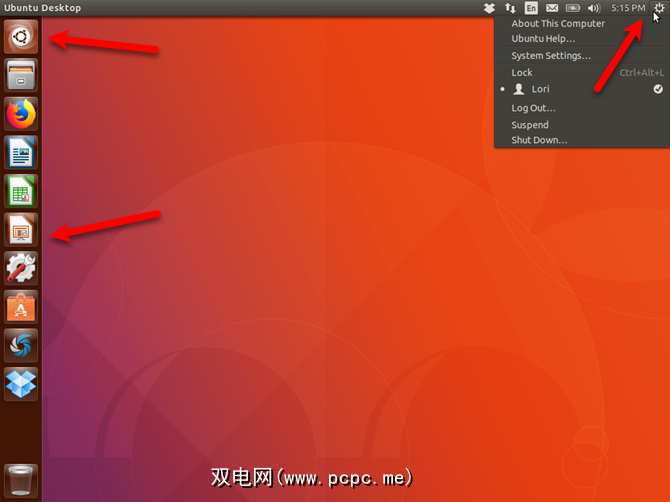 通过屏幕右上角的齿轮图标可以访问计算机信息,系统设置和帮助。您也可以从此菜单锁定屏幕,注销,重新启动和关闭。