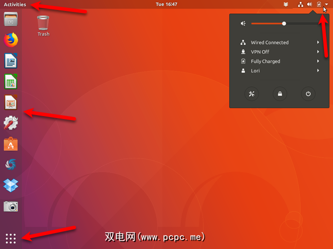 GNOME(Ubuntu)桌面环境看起来像表面上的Unity桌面。但是存在一些差异和改进。