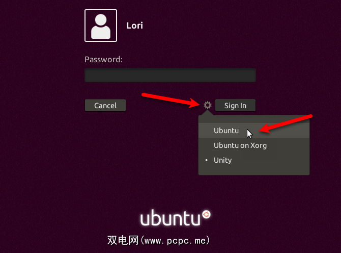 Unity 桌面已从登录屏幕上的桌面环境菜单中删除。选择 Ubuntu 或 Ubuntu在Xorg上并登录。