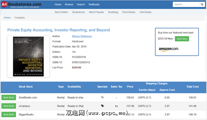 要比较各种书店的租金价格,请转到适当命名的AllBookstores.com。搜索完教科书后,单击所选书的比较价格。然后,您将获得商店,可用性,特价和运输费用的清晰视图。并且,请确保从下拉框中选择适用的营业税。