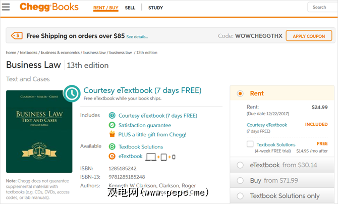 Chegg Books可让您扩展或购买租金,超过85美元的订单提供免费送货,并免费提供退货书。