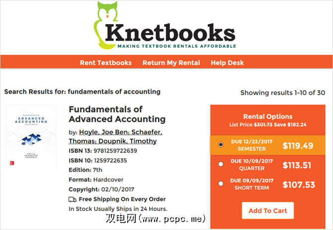 Knetbooks与eCampus.com类似,其学期,季度和短期租金以及主页上的促销代码。使用搜索框找到教科书后,您将看到每个时期的价格。
