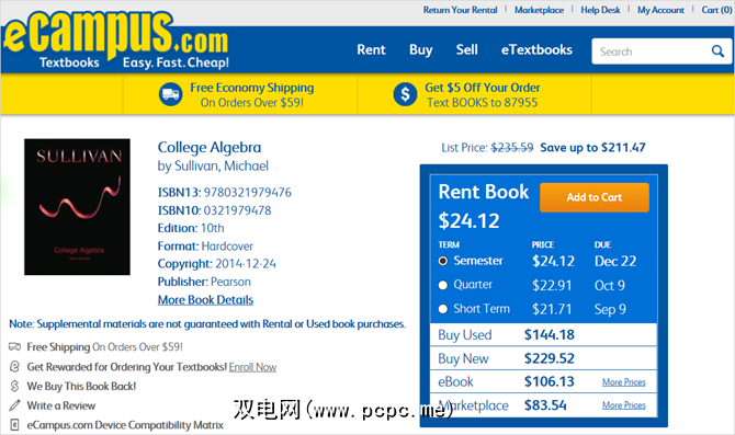 如果您打算继续在大学期间租借教科书,eCampus.com是一个不错的选择。并且一定要在主页顶部检查即时储蓄促销代码。