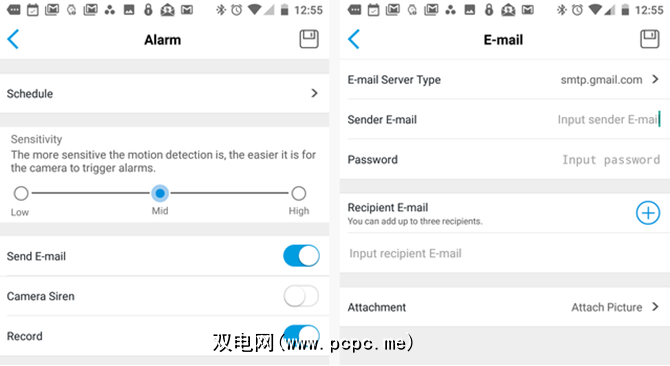 默认情况下,相机已设置为发送电子邮件和记录视频,但是如果您想吓到任何人,请随时启用警报器。