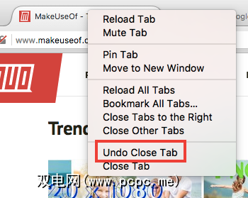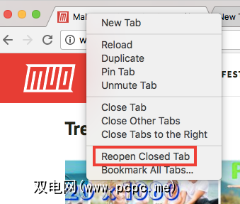 右键单击任何打开的选项卡,然后单击重新打开关闭的选项卡,或使用键盘快捷键 Ctrl / Cmd + Shift + T 。