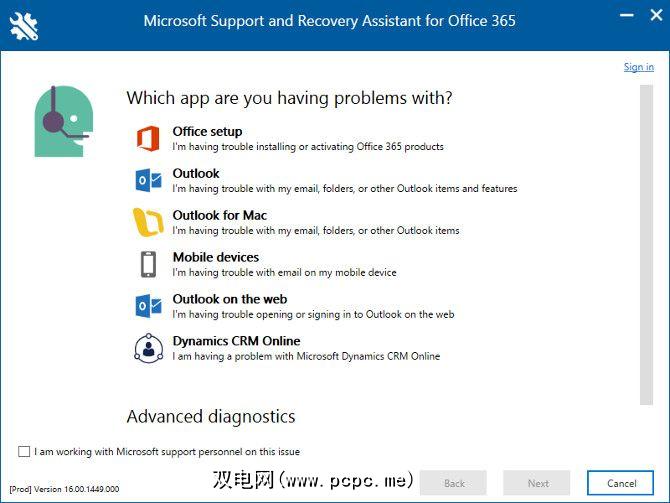 支持和恢复助手是引入的新工具与Office 365套件一起使用。 Microsoft支持人员经常使用它来指导用户通过电话进行恢复过程,但是它足够直接让您自己使用。