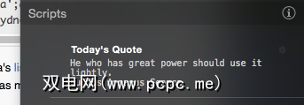 如果您希望定期检查某些信息,则需要了解“今日脚本"(下载)。这个简单的Mac应用程序使您几乎可以向优胜美地的新通知中心添加任何内容。