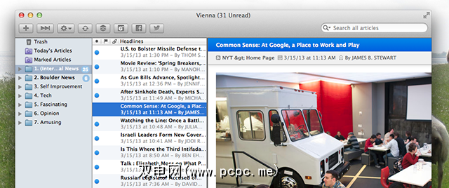 如果您不想为台式机RSS阅读器付费,那么维也纳是个不错的选择值得一试–与NetNewsWire相比,它提供了更多的同步选项。如果您有兴趣,请阅读有关Vienna的更多信息。